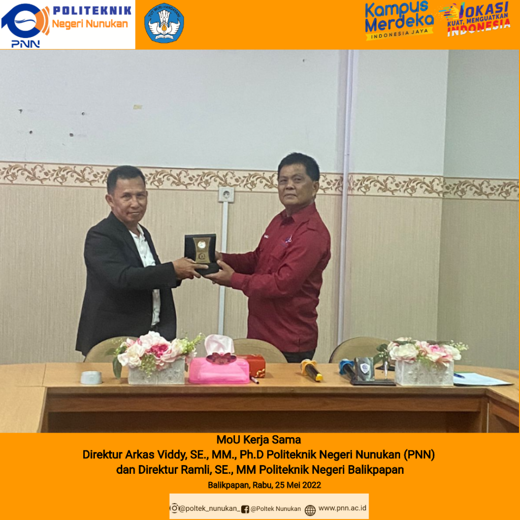PNN- Direktur Politeknik Negeri Nunukan (PNN) Arkas Viddy, SE., MM., Ph.D jajaki kerja sama dengan Politeknik Negeri Balikpapan (Poltekba) pada Rabu, 25 Mei 2022 di Balikpapan, Kalimantan Timur. Direktur PNN mengatakan jalinan kerja sama (MoU) dilakukan agar penyusunan kurikulum sesuai dengan kebutuhan industri. “Kebutuhan sekarang ini sangat jelas erat kaitannya dengan dunia industri, untuk itu …