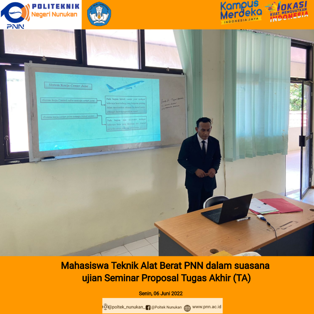 NUNUKAN, PNN- Program studi jurusan Teknik Alat Berat (TAB) Politeknik Negeri Nunukan (PNN) menggelar Seminar proposal Tugas Akhir (TA) mahasiswa semester IV pada Senin, 06 Juni 2022. Seminar proposal TA merupakan salah satu tahap penting dalam dunia perkuliahan. Dalam mengajukan suatu proposal tugas akhir, mahasiswa harus melakukan pendaftaran TA. Pelaksanaan ujian kali ini telah berjalan …