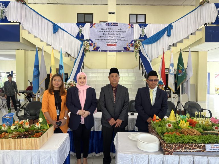 PNN — Rabu, 08 Oktober 2025. Politeknik Negeri Nunukan (PNN) menggelar Sidang Terbuka pada Rabu, 08 Oktober 2025 dalam rangka memperingati Dies Natalis ke-5 dengan tema “Berdampak Nyata, Berkarya dari Perbatasan untuk Indonesia.” Acara yang berlangsung khidmat ini menjadi momentum penting untuk merefleksikan perjalanan lima tahun kiprah PNN dalam menghadirkan pendidikan vokasi berkualitas di wilayah perbatasan, sekaligus meneguhkan semangat kebersamaan seluruh sivitas akademika.