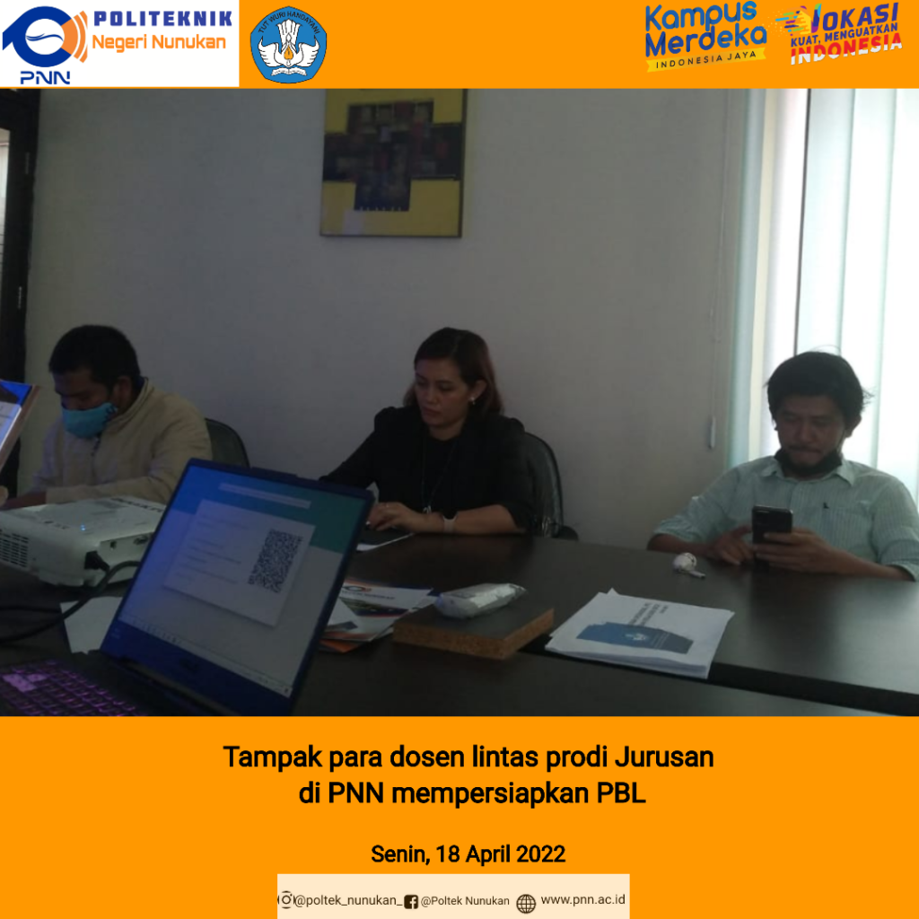 NUNUKAN, PNN- Direktur Politeknik Negeri Nunukan (PNN) Arkas Viddy, SE., MM., Ph.D memberikan arahan guna membahas persiapan Projects Based Learning (PBL) Pendidikan Tinggi Vokasi pada Senin, 18 April 2022.