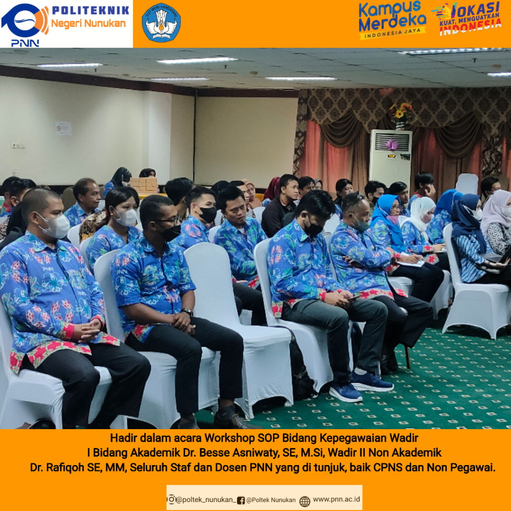 Sekedar informasi, Workshop Standart Operasional Prosedur (SOP) Bidang Kepegawaian PNN materi tersebut dibawakan oleh bapak Adi Chandra, SE, M.M, dan Azmi Azwar Aswari