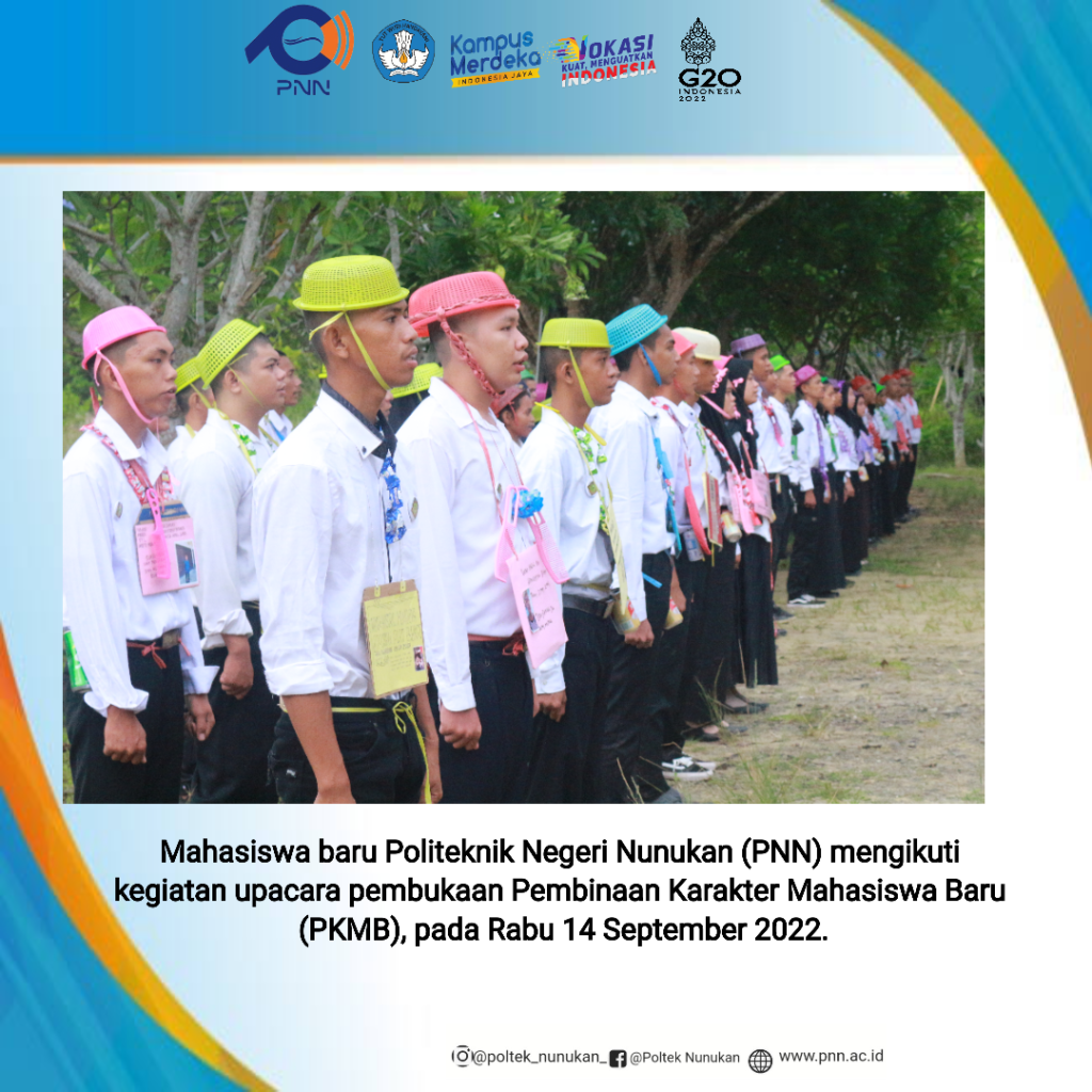 NUNUKAN, PNN- Mahasiswa baru Politeknik Negeri Nunukan (PNN) mengikuti kegiatan upacara pembukaan Pembinaan Karakter Mahasiswa Baru (PKMB), pada Rabu, 14 September 2022.