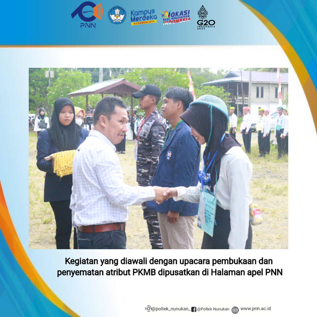 Kegiatan yang diawali dengan upacara pembukaan dan penyematan atribut PKMB dipusatkan di Halaman apel PNN.