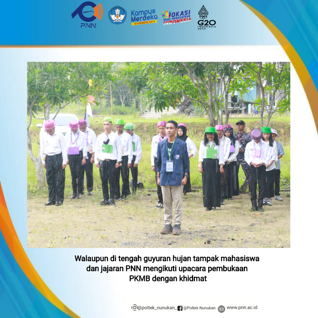 Walaupun di tengah guyuran hujan tampak mahasiswa dan jajaran PNN mengikuti upacara pembukaan PKMB dengan khidmat.