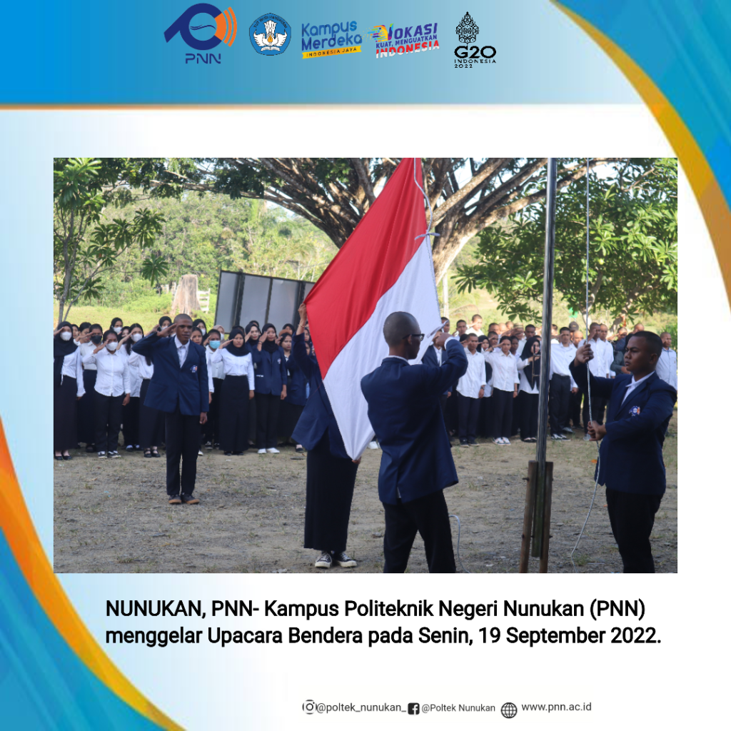 NUNUKAN, PNN- Kampus Politeknik Negeri Nunukan (PNN) menggelar Upacara Bendera pada Senin, 19 September 2022.