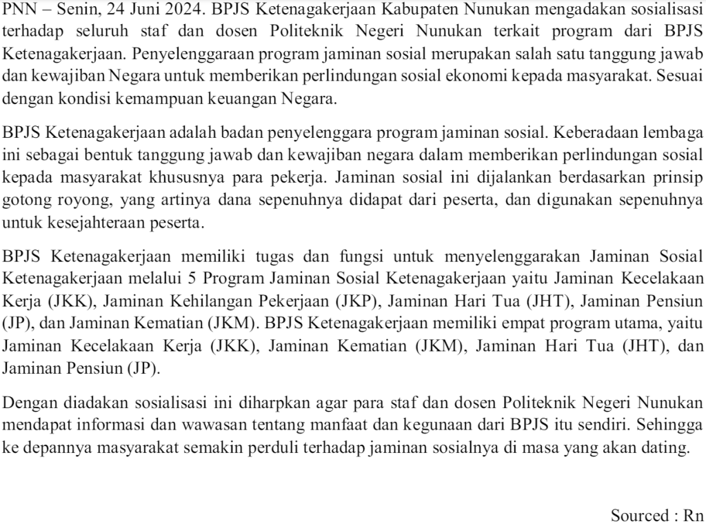 Kunjungi PNN, BPJS Ketenagakerjaan Nunukan Berikan Sosialisasi