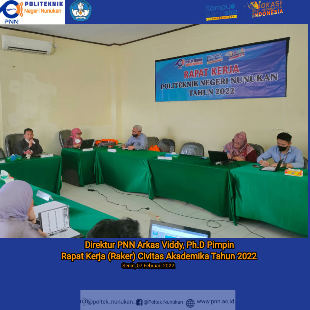 NUNUKAN, PNN- Politeknik Negeri Nunukan (PNN) menggelar rapat kerja (Raker) Tahun 2022 pada, Senin, (07/02/22) dalam penyampaian Direktur PNN Arkas Viddy, Ph.D meminta semua unit kerja termasuk bidang Akademik dan Non Akademik harus menyesuaikan Indikator Kerja Utama (IKU) yang telah disusun sedemikian rupa.  Direktur Arkas Viddy dalam acara Rapat Kerja kampus PNN menuturkan, Pihaknya terus …