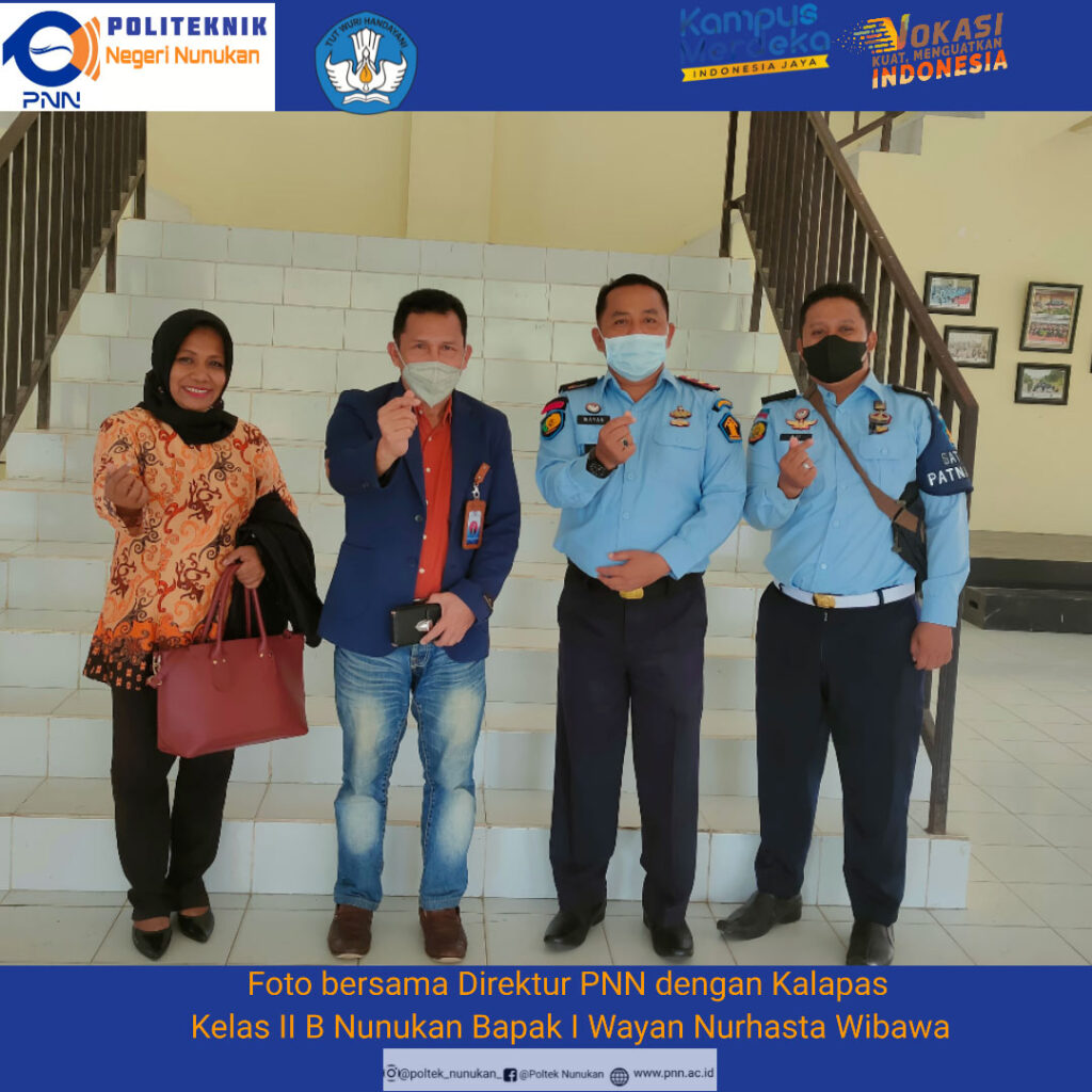 NUNUKAN, PNN- Direktur Politeknik Negeri Nunukan (PNN) Arkas Viddy, Ph.D menyambut hangat kedatangan Kepala Lembaga Permasyarakatan (Kalapas) Kelas 2 B Nunukan bapak I Wayan Nurhasta Wibawa, pada Selasa, (08/02/22).   Kedatangan Kalapas Nunukan I Wayan Nurhasta Wibawa tersebut selain silaturahmi juga mengajak perguruan tinggi PNN untuk kolaborasi kerja sama dalam bidang pengembangan sumber daya manusia.  Menurut …