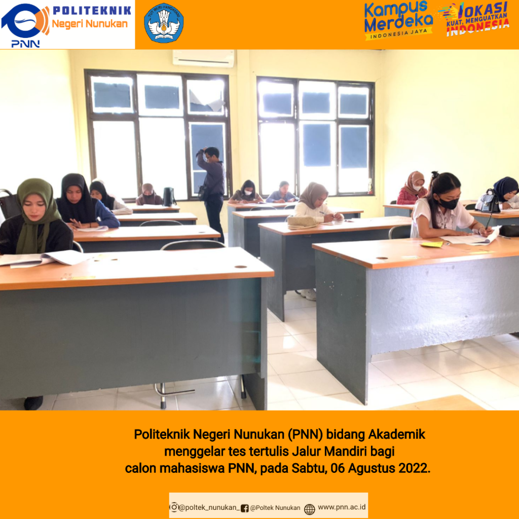 NUNUKAN, PNN- Politeknik Negeri Nunukan (PNN) bidang Akademik menggelar tes tertulis Jalur Mandiri bagi calon mahasiswa PNN, pada Sabtu, 06 Agustus 2022. Wakil Direktur I Bidang Akademik Dr Besse Asniwaty SE, M.Si yang diwakili H Trisno Hadi, S.KM, M.Si mengatakan untuk tes tertulis Jalur Mandiri berjalan dengan baik. Ini juga jalur seleksi terakhir untuk pendaftaran …