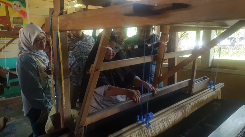 Dalam kesempatan tersebut Direktur PNN Arkas Viddy, Ph.D juga berkesempatan meninjau langsung beberapa kerjanian tangan yang dihasilkan Politeknik Negeri Bengkalis yang bernilai ekonomis tinggi, salah satunya adalah proses pembuatan kain tenun yang merupakan mitra binaan Politeknik Negeri Bengkalis.
