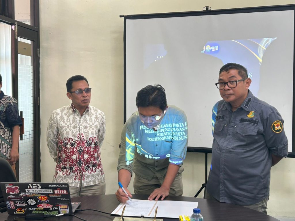 PNN – Kamis, 31 Juli 2025. Direktur Politeknik Negeri Nunukan Bpk. Arkas Viddy, Ph.D. melakukan kegiatan Penandatanganan Pakta Integritas Kegiatan Pengamanan Proyek Strategis Pada Politeknik Negeri Nunukan bersama Kejaksaan. Adapun guna diadakannya kegiatan ini adalah untuk mengetahui sejauh mana adanya Ancaman, Gangguan, Hambatan dan Tantangan (AGHT) serta progress pelaksanaan pekerjaan terhadap kegiatan Proyek Strategis Pada Politeknik Negeri Nunukan.