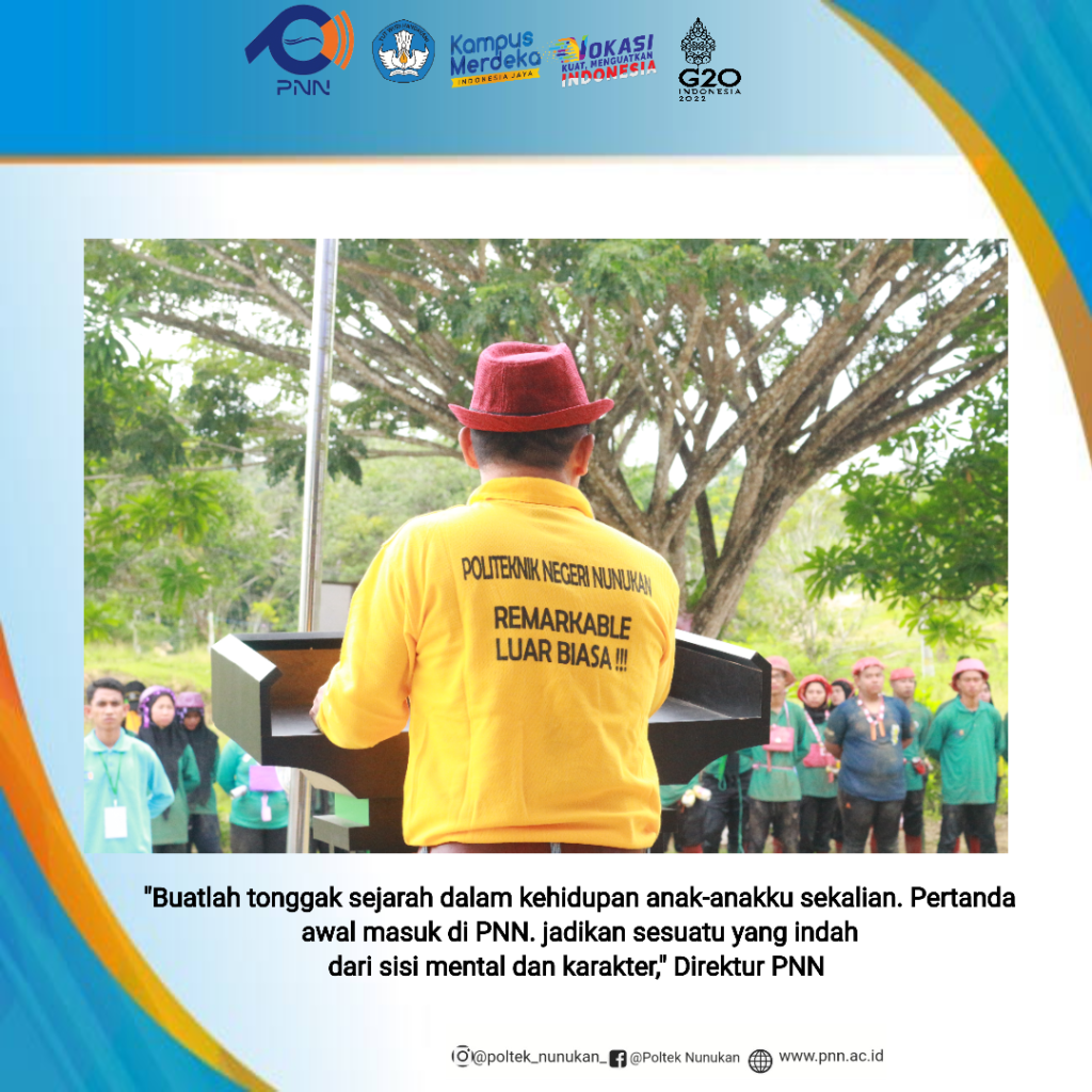 NUNUKAN, PNN- Direktur Politeknik Negeri Nunukan (PNN) Arkas Viddy, SE, MM, Ph.D resmi menutup acara Pembinaan Karakter Mahasiswa Baru (PKMB), tahun ajaran 2022-2023 pada Kamis, 15 September 2022.