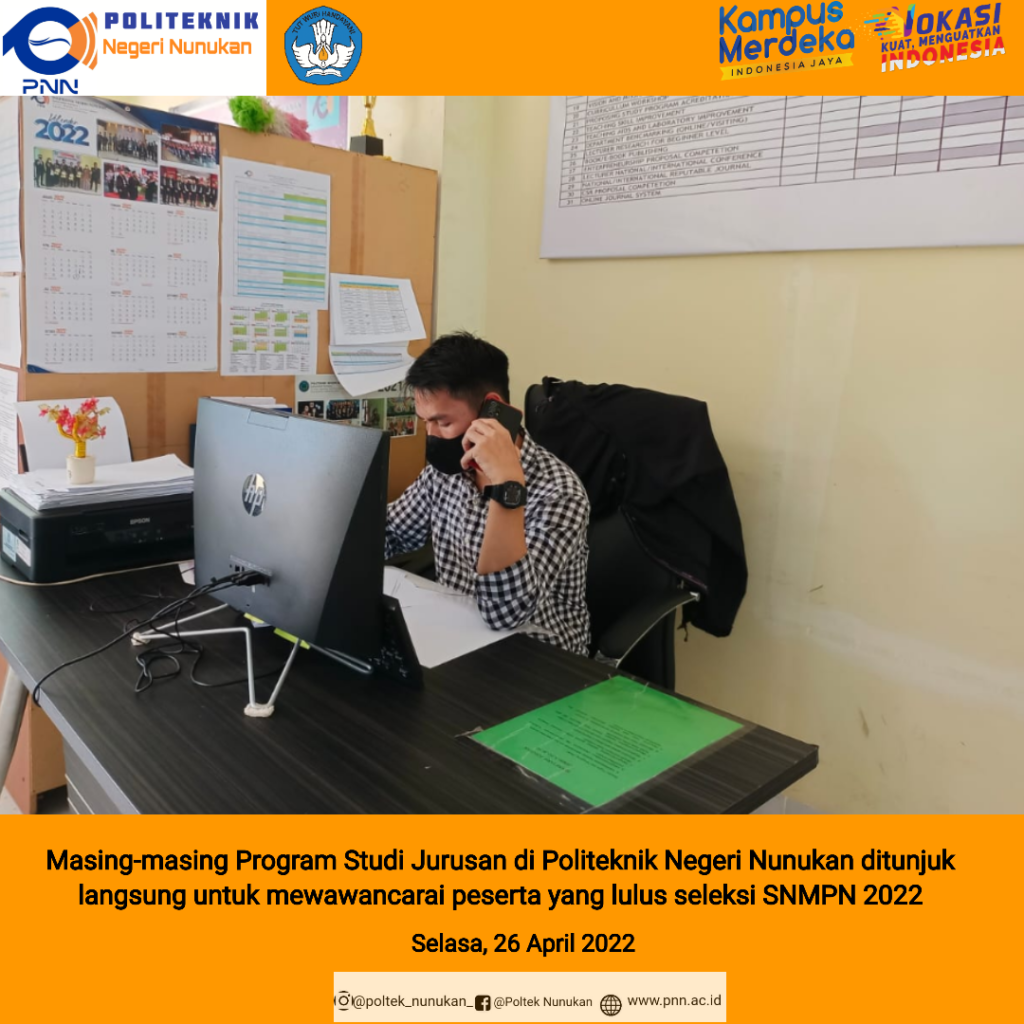 NUNUKAN, PNN-Kegiatan wawancara calon mahasiswa peserta lulusan Seleksi Nasional Mahasiswa Politeknik Negeri (SNMPN) Politeknik Negeri Nunukan (PNN) Tahun 2022 diikuti secara langsung oleh peserta yang lulus seleksi, Senin 26 April 2022.