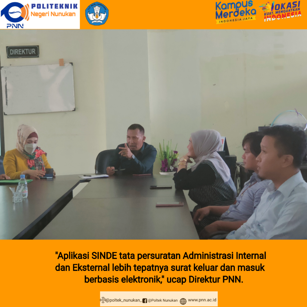 “Aplikasi SINDE tata persuratan Administrasi Internal dan Eksternal lebih tepatnya surat keluar dan masuk berbasis elektronik,” ucap Direktur PNN.