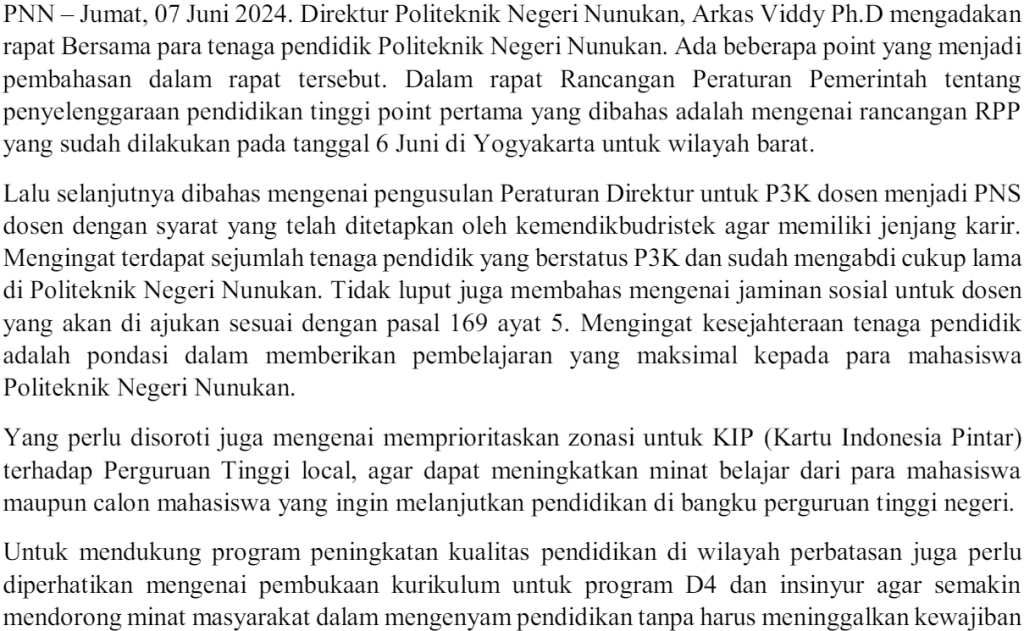 Rapat Pembahasan RPP DIKTI 2024 Politeknik Negeri Nunukan