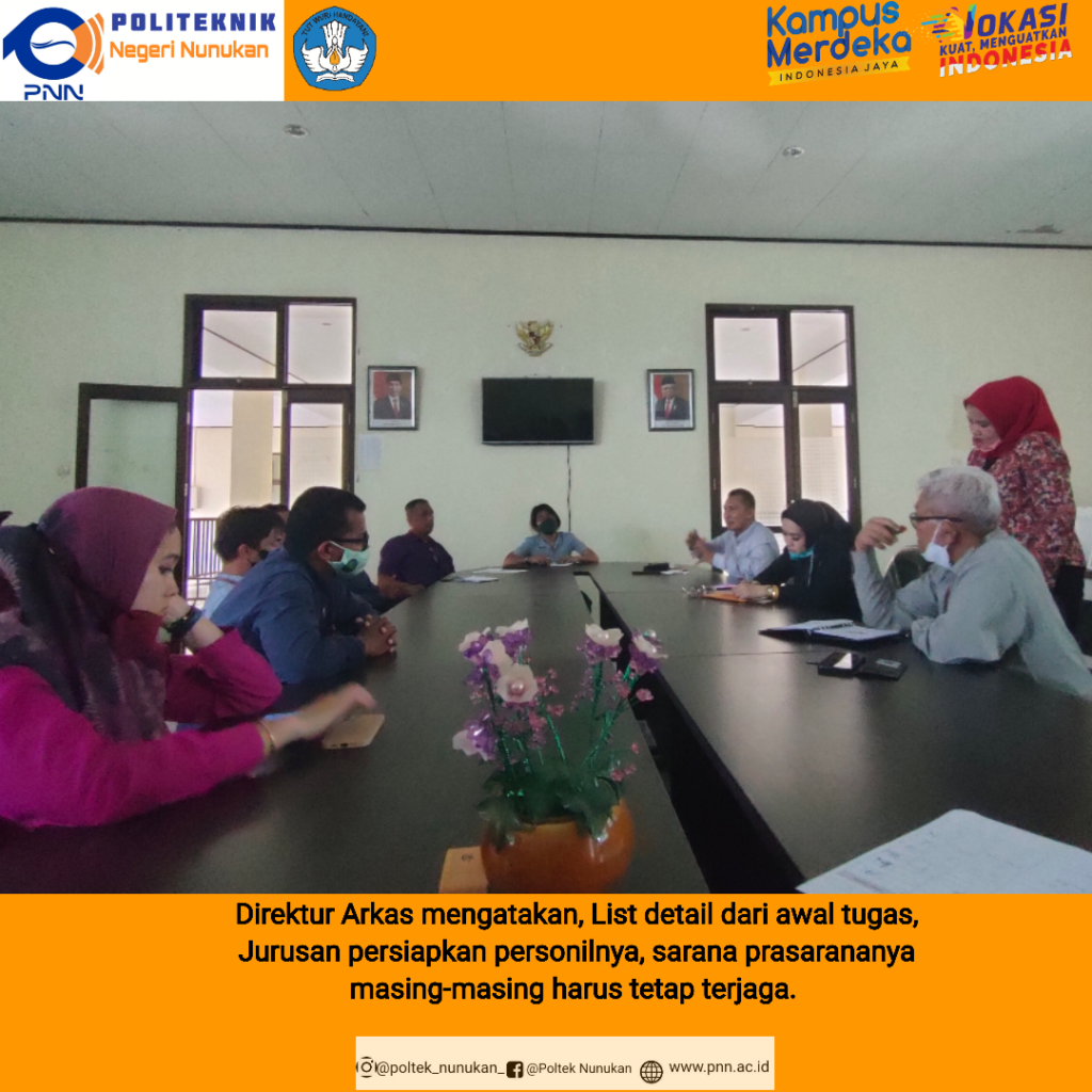 NUNUKAN, PNN- Direktur Arkas Viddy, SE., MM., Ph.D beserta jajaran Politeknik Negeri Nunukan (PNN) melakukan pematangan dan progres persiapan untuk menyambut Kedatangan Bupati Kolaka, Ketua DPRD Kolaka dan Rombongan dan Direktur Politeknik Negeri Ujung Pandang (PNUP).