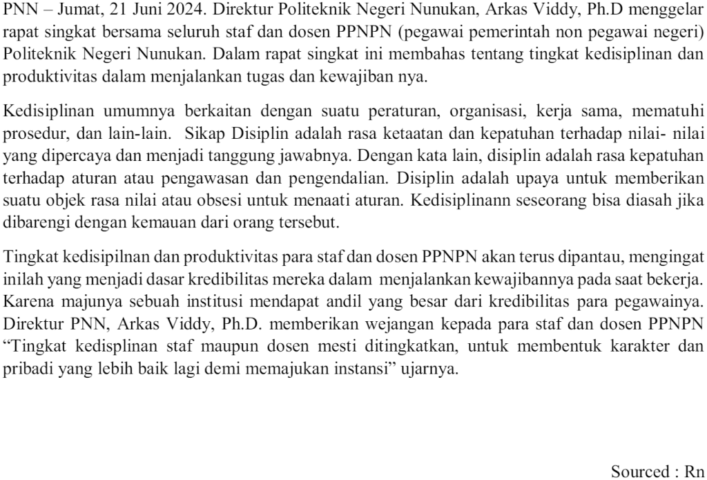 Soroti Kedisiplinan, Direktur PNN Berikan “Wejangan” Bagi Para Staf dan Dosen PPNPN PNN