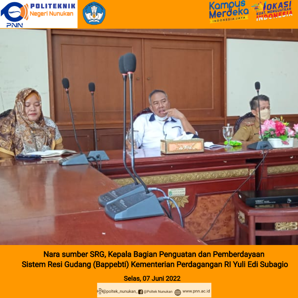 NUNUKAN, PNN- Kajur Teknologi Hasil Perikanan (THP) Politeknik Negeri Nunukan (PNN) Basran, S.Pi., M.Si bersama Kepala UPT Teknologi Informasi PNN Akbaruddin SE menghadiri undangan Pemkab Nunukan yang difasilitasi oleh Dinas Perdagangan, Selasa, 07 Juni 2022.