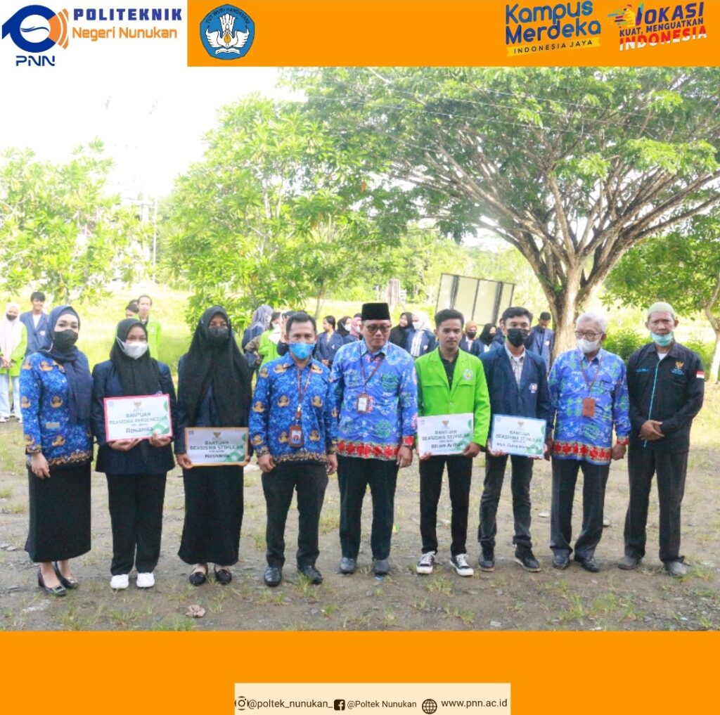Selain acara upacara, Ketua BAZNAS Kabupaten Nunukan didampingi Direktur PNN dan Wadir II juga menyerahkan secara simbolis bantuan beasiswa kepada beberapa mahasiswa PNN. (hms)