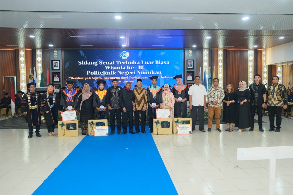 PNN — Senin, 27 Oktober 2025. Politeknik Negeri Nunukan (PNN) baru saja menyelenggarakan Sidang Terbuka Senat dalam rangka Wisuda Ke III Program Diploma III Tahun Akademik 2024/2025 dengan sukses pada Sabtu, 25 Oktober 2025, di Aula Lantai V Kantor Bupati Nunukan. Sebanyak 12i  lulusan dari 4 program studi resmi dilantik, menandai kontribusi PNN dalam mencetak tenaga terampil yang siap berkiprah di dunia kerja, khususnya di Kalimantan Utara.”