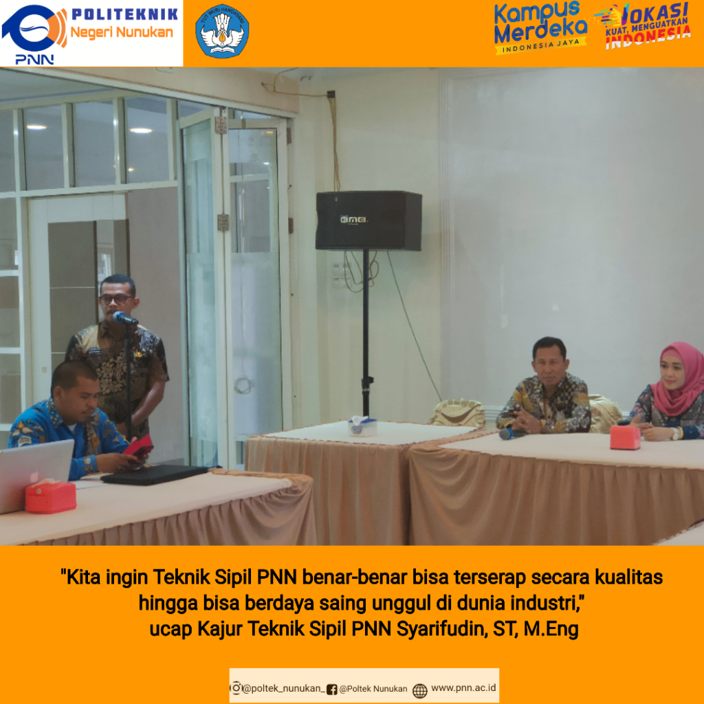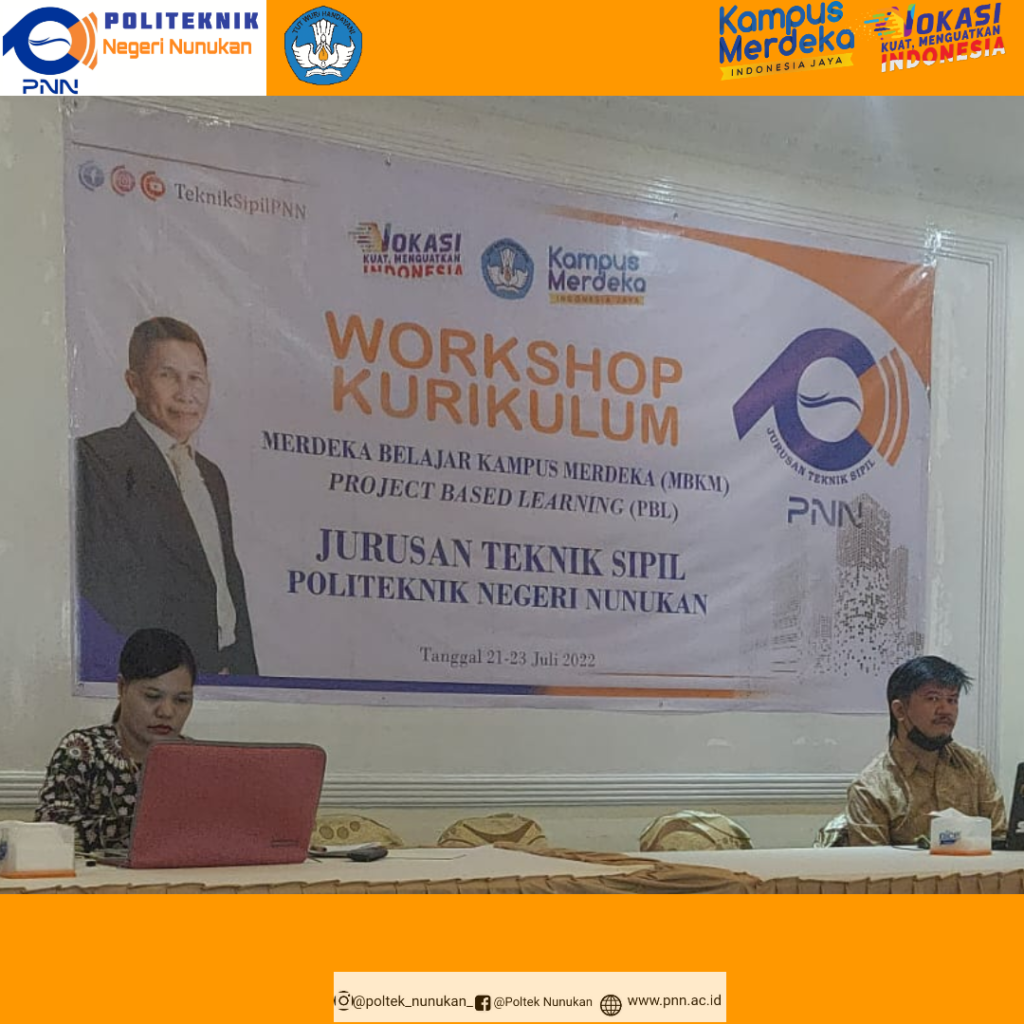 NUNUKAN, PNN- Jurusan Teknik Sipil Infrastruktur Perkotaan (TSIP) Politeknik Negeri Nunukan (PNN) menggelar Workshop Kurikulum Merdeka Belajar Kampus Merdeka (MBKM) Projects Based Learning (PBL) di Hotel Lenflin, Nunukan, Kamis, 21 Juli 2022.